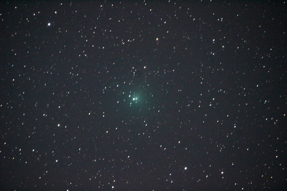 22cm反射(1500mmF6.8)直焦 ISO3200 30秒、30秒、45秒露出の3コマを彗星の位置をあわせてコンポジットしてレベル補正 大和高原天体観測所