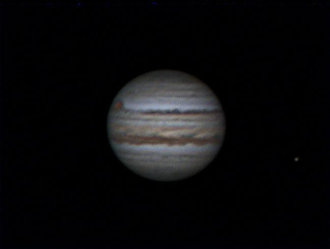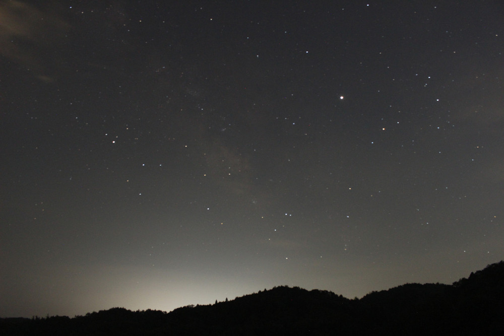 下の写真は木星と土星を含む星野写真です。ズームレンズの18mmF5.6 ISO400 30秒露出の固定撮影で、デジタルカメラで撮影した元画像です。(要するに撮影しただけの無調整の画像です。)