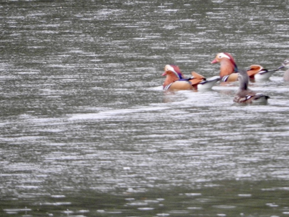 3月28日に一年ぶりで錦織公園の探鳥会に参加しました。当日あいにく雨の天気で集まったのはバーディ4名プラス探鳥リーダー4名の計8名、途中で雨がきつくなると中止覚悟で出発しました。今年は季節の巡りが早く水鳥も少ないようです。それでも奥の池では「ヒドリガモ」に混じって「バン」と「オシドリ」を見ることが出来ました。