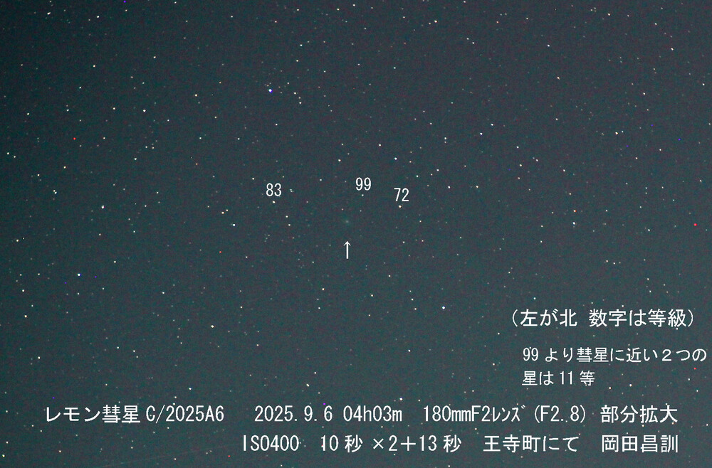 この彗星の詳細や観測星図は、次の投稿をご覧下さい。