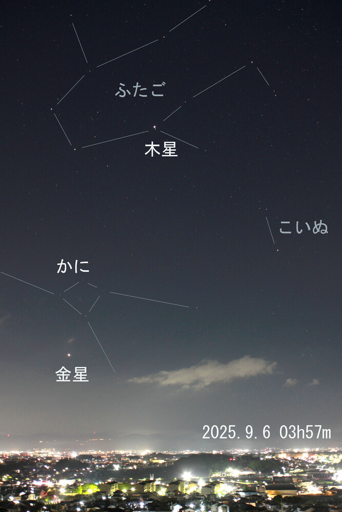 この日の明け方の空です。冬の星座のなかに金星と木星もあり、にぎやかです。