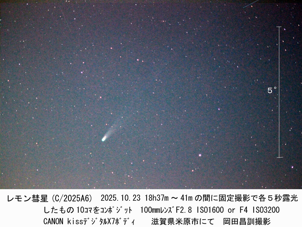 10月23日は近畿地方は良く晴れたと思いますが、みなさんレモン彗星の観測(撮影)はできましたでしょうか?